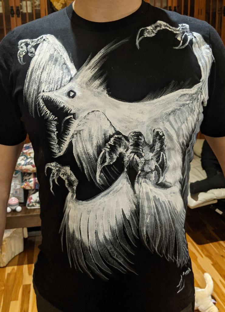Brand new shirt finished and modeled for my friend. Painted on a tshirt w acrylic w bonding medium. I am still taking new comissions so hit me up!