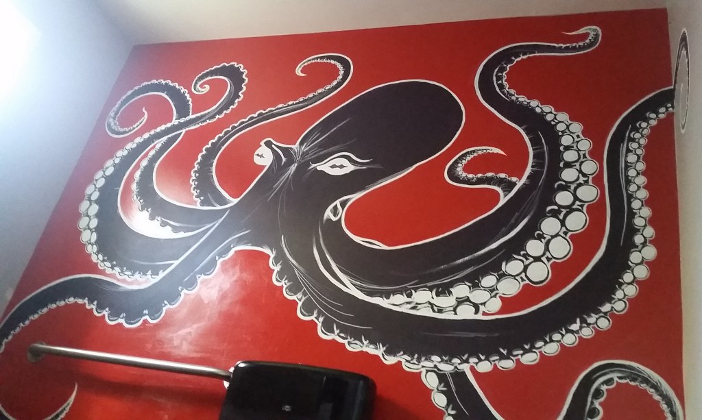 Laser Etch Badge for City of FlorenceLaser Etch OrnamentsLaser Etch SpoonLive Painting at Pancakes and BoozeAzathothIn Progress: Fishieses Acrylic and Ink, 7ft x 4ftOmnipooose, Acrylic Paint 8ftx 7ft at La Herradurra RestaurantMermaid, Acrylic Paint 7ft x 7ft located at La Herradurra RestaurantAlice in Wonderland Cake